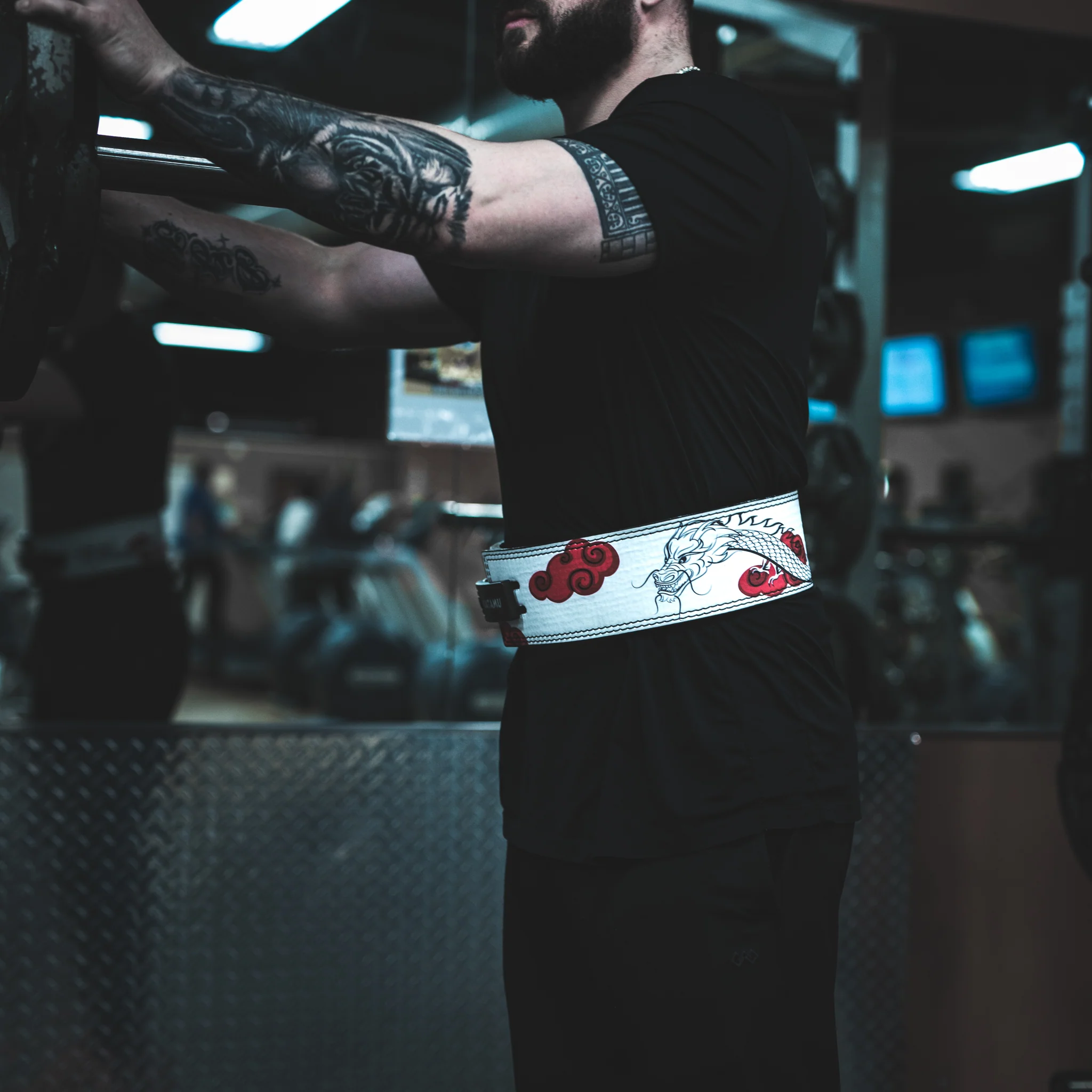 - White Dragon Lever Belt – Premium leather with an intricate White Dragon leather print, available in 10mm for flexibility or 13mm for maximum core stability, secured with a stainless steel alloy lever in striking red for a bold finish.